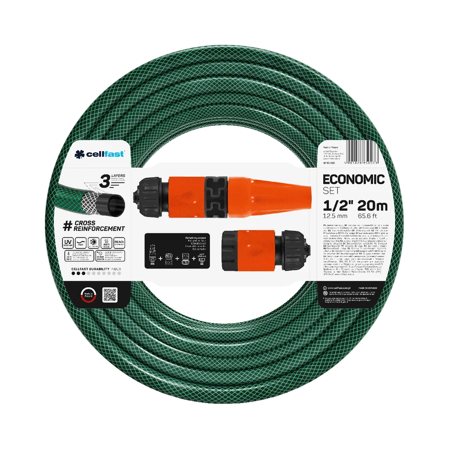 CELLFAST Locsolótömlő 3 Rétegű ECONOMIC SET 1/2" 20 m
