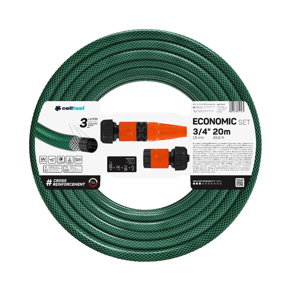 CELLFAST Locsolótömlő 3 Rétegű ECONOMIC SET 3/4" 20 m