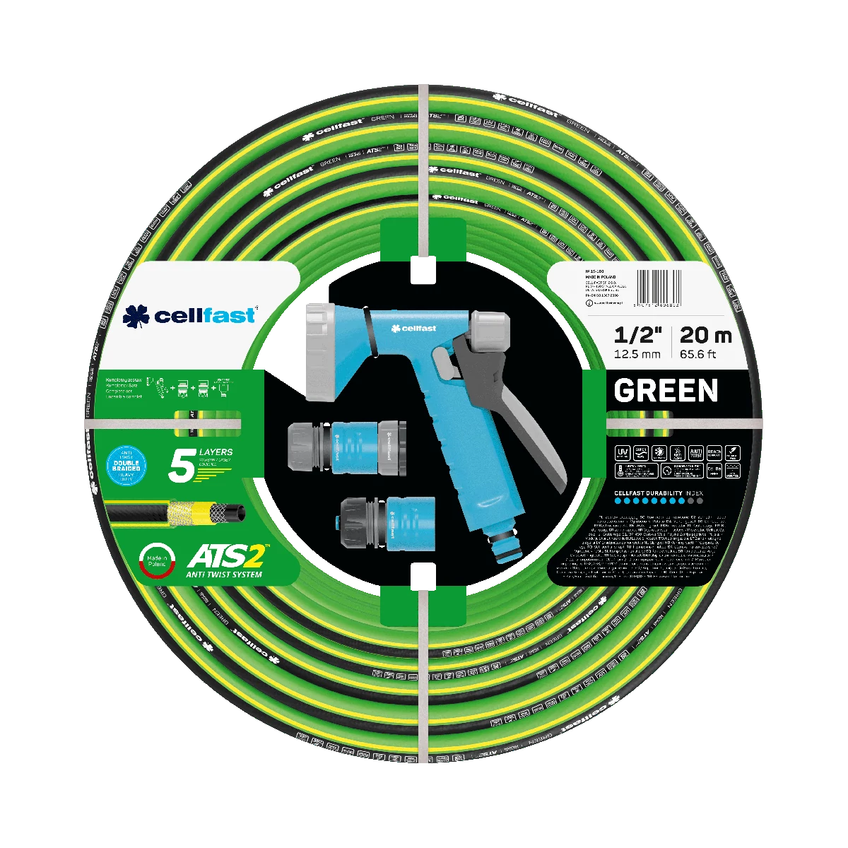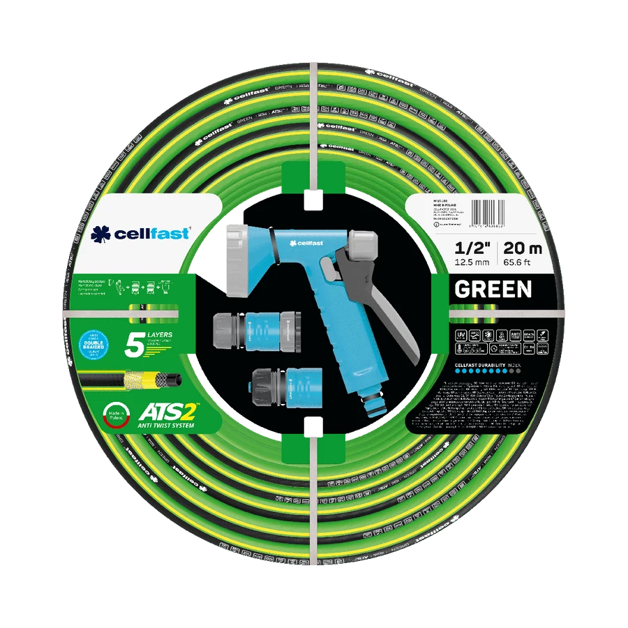 CELLFAST Locsolótömlő 5 Rétegű GREEN SET 1/2" 20 m