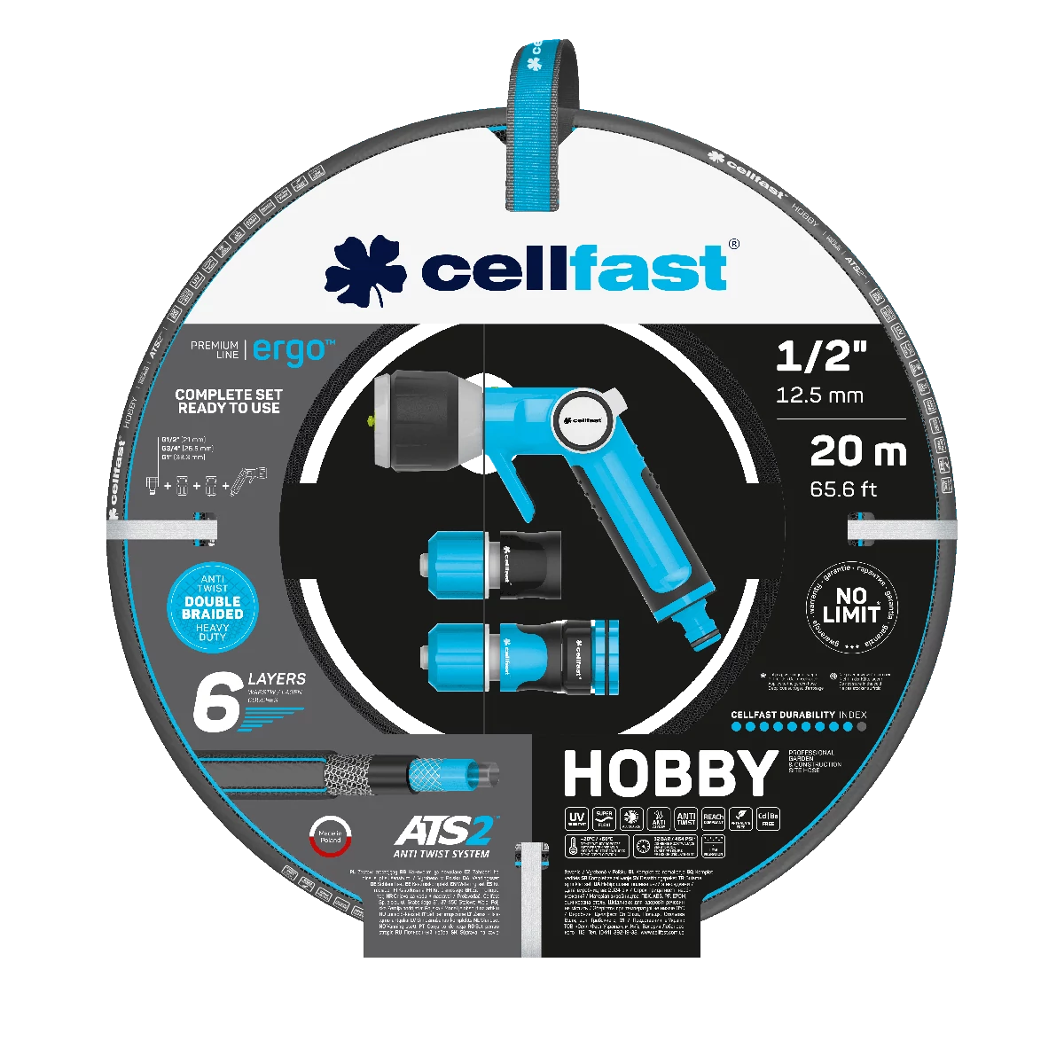 CELLFAST Locsolótömlő 6 Rétegű HOBBY SET 1/2" 20 m