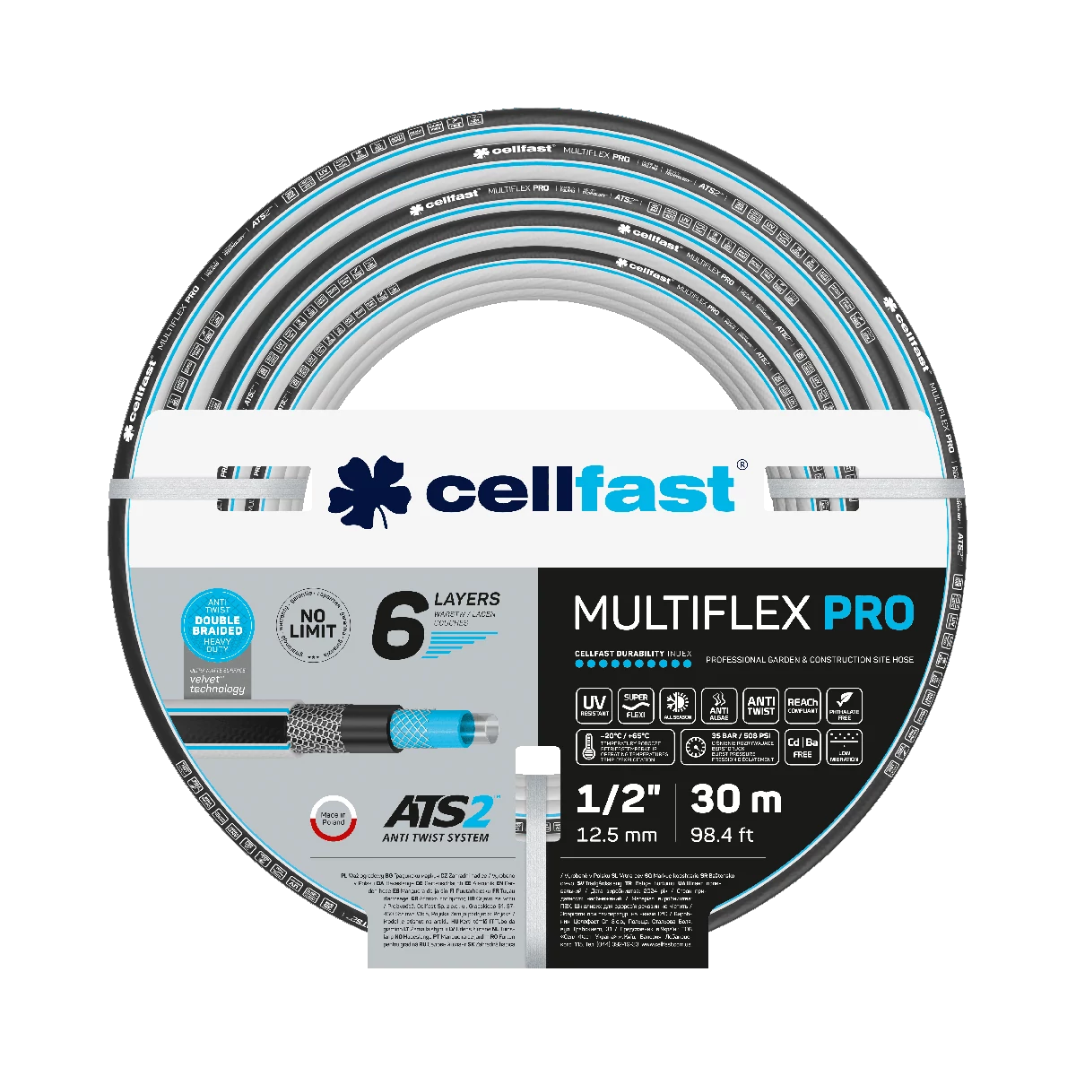 CELLFAST Locsolótömlő 6 Rétegű MULTIFLEX ATSV 1/2" 30 m