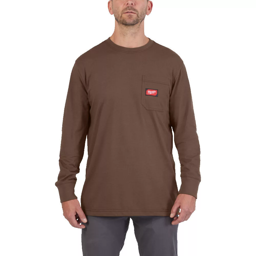 WTLSBRII XL - Hosszú ujjú zsebes póló Barna